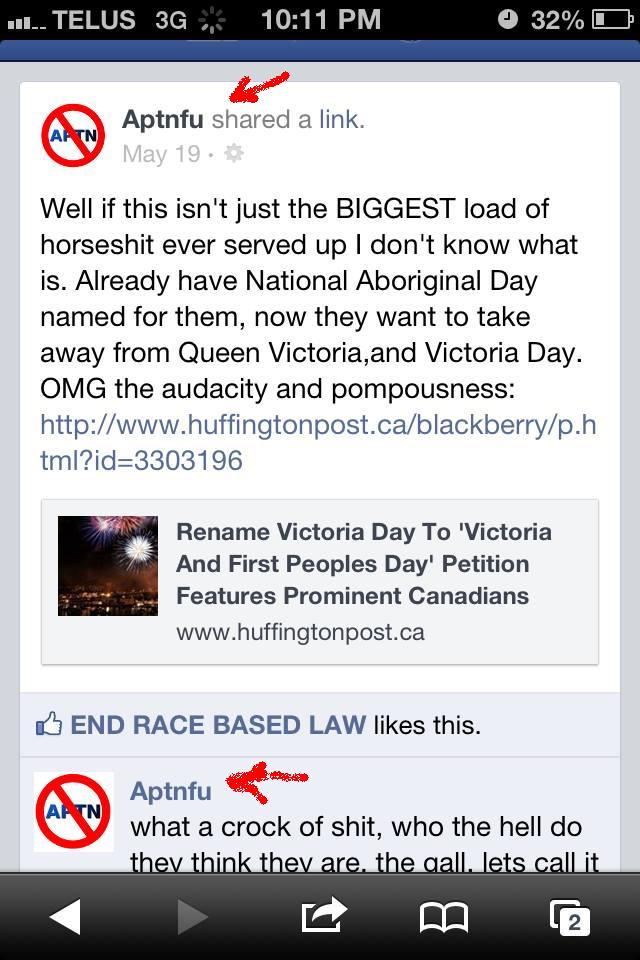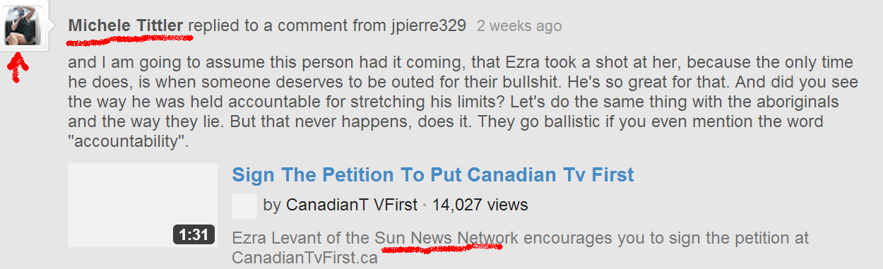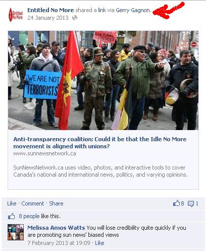 Here’s one such instance of the ERBL groups out-reach: the group Entitled No More receiving a link to a highly tendentious article from their favourite news source – SunNews.