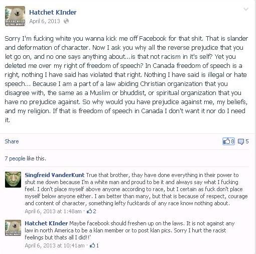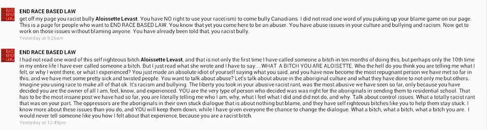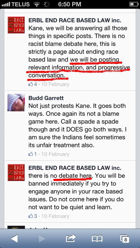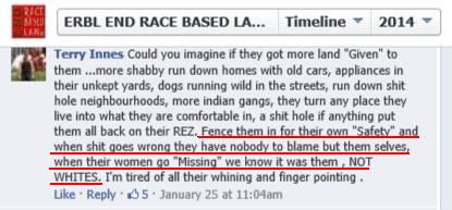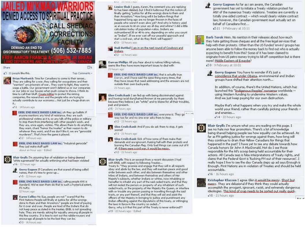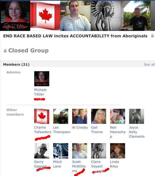 As we have documented previously, ERBL has built this group based on their infiltration of a whole series of anti-native groups, as well as with smaller “closed groups” they have built to coordinate their activities. They have also been picking up a wide set of different associates. Interestingly, for an ‘anti-racist’ group, their requirements for allies don’t include any kind of ‘anti-racist’ activity: profound negativity about the First Nations seems to be their only criterion for membership.