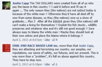 All of these folks aren’t just on the group’s main pages – not just visitors – but also on their personal friends lists, closed groups; as well as joining their campaigns on social media sites; in addition to crowding on to various unknowing peoples’ personal pages in order to sway popular sentiment in a dangerously racist direction. As we’ve built our matrix for these people, it becomes clear that they are following a coordinated plan – as ERBL joins with other anti-native groups to spread their particular brand of hate: