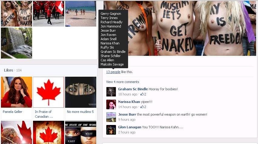 It’s all good fun: a topless anti-Muslim demonstration; a cheery anti-Muslim poster; a seriously off-colour anti-Native joke. Gerry regularly demonstrates his common feeling with many of these extremists. He positively haunts their personal pages.