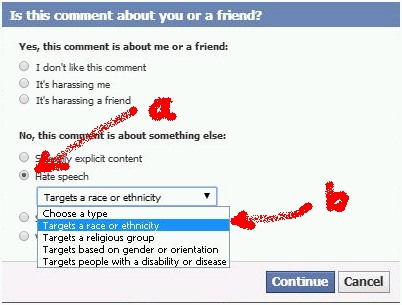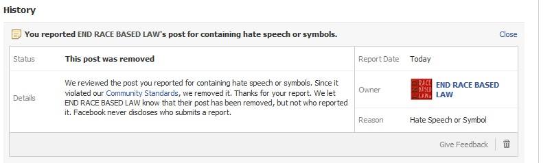 as well as an excellent primer on reporting Facebook hate speech. Hopefully, if enough people complain, Facebook will one day take this problem seriously.