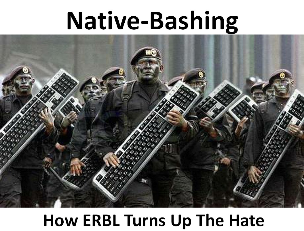 This is the kind of discourse that ERBL is building it’s “political group” on; not petitions, but an amplifying of hatred and prejudice: