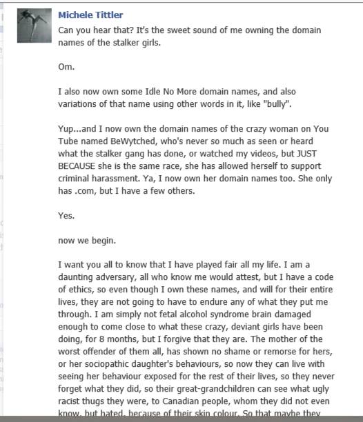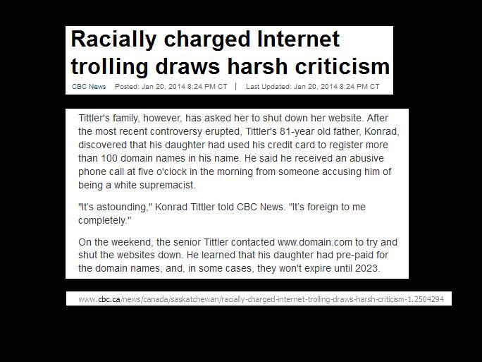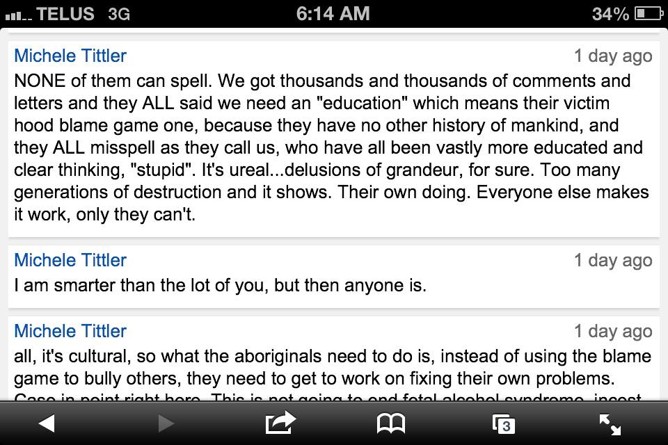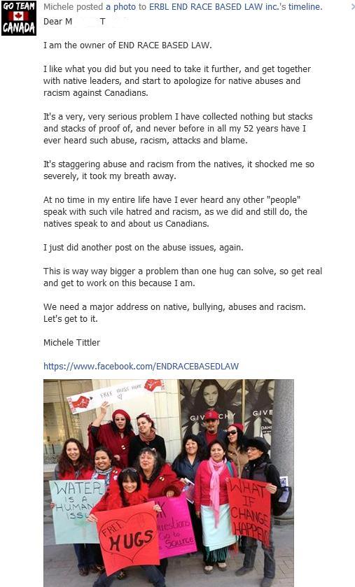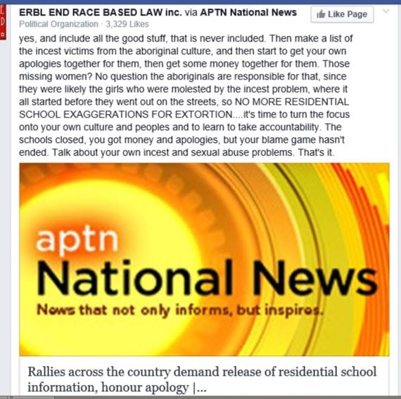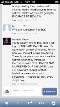 We have a “polititical organization” here which is dedicated to whipping its followers up into heightened states of racism and prejudice; to serving their need for justifications for their bigotry; to targeting random First Nations people to the end of satisfying that bigotry; and to collecting money – to what end? Surely a “non-profit” must be doing something other than sitting online and venting hate.